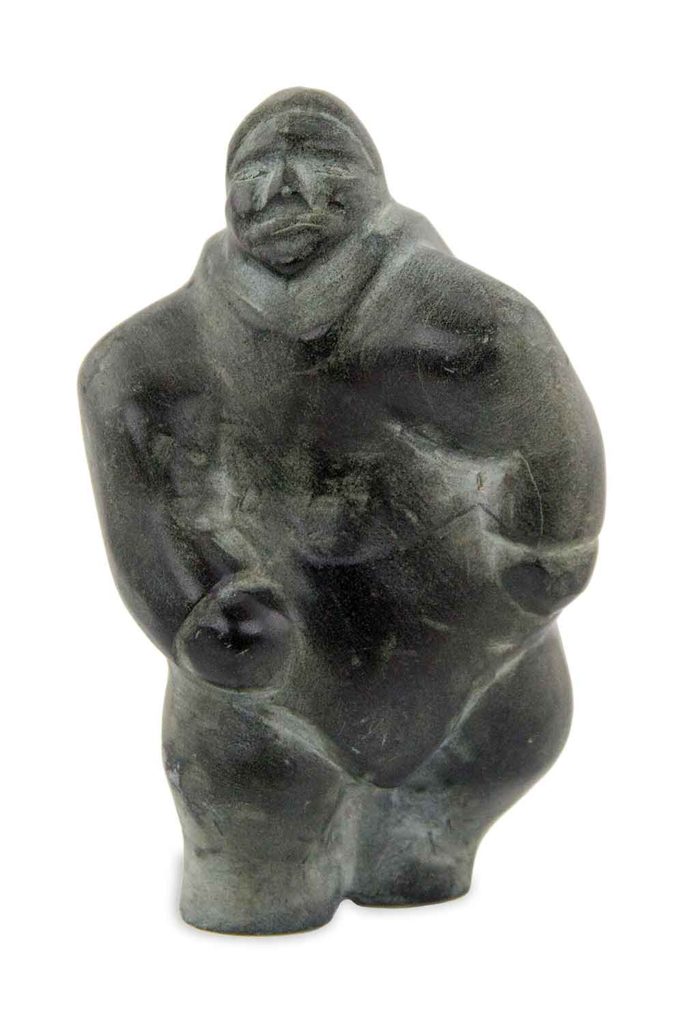 Or look at these two individuals expressing grim determination, yet differently. The first is by Barnabus Arnasungaaq, a major Inuit sculptor. This Inuk is going to get where he’s going, period. Nothing will stop him!
