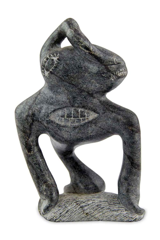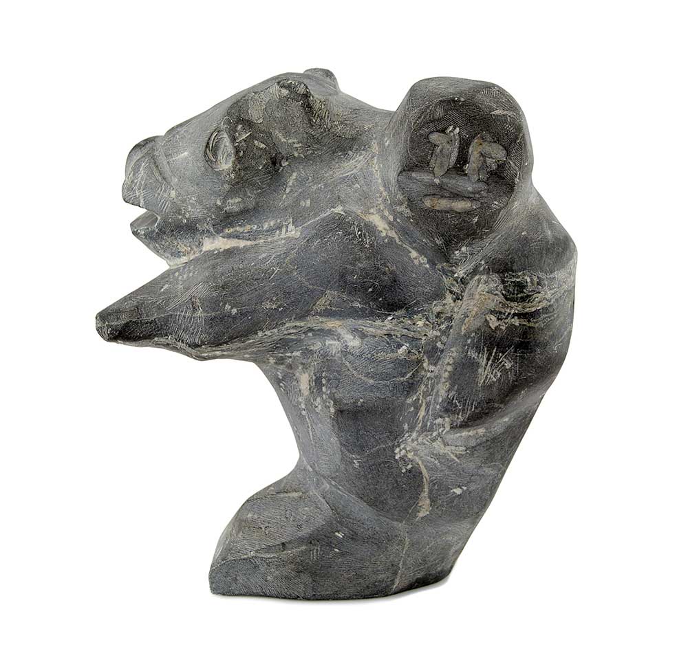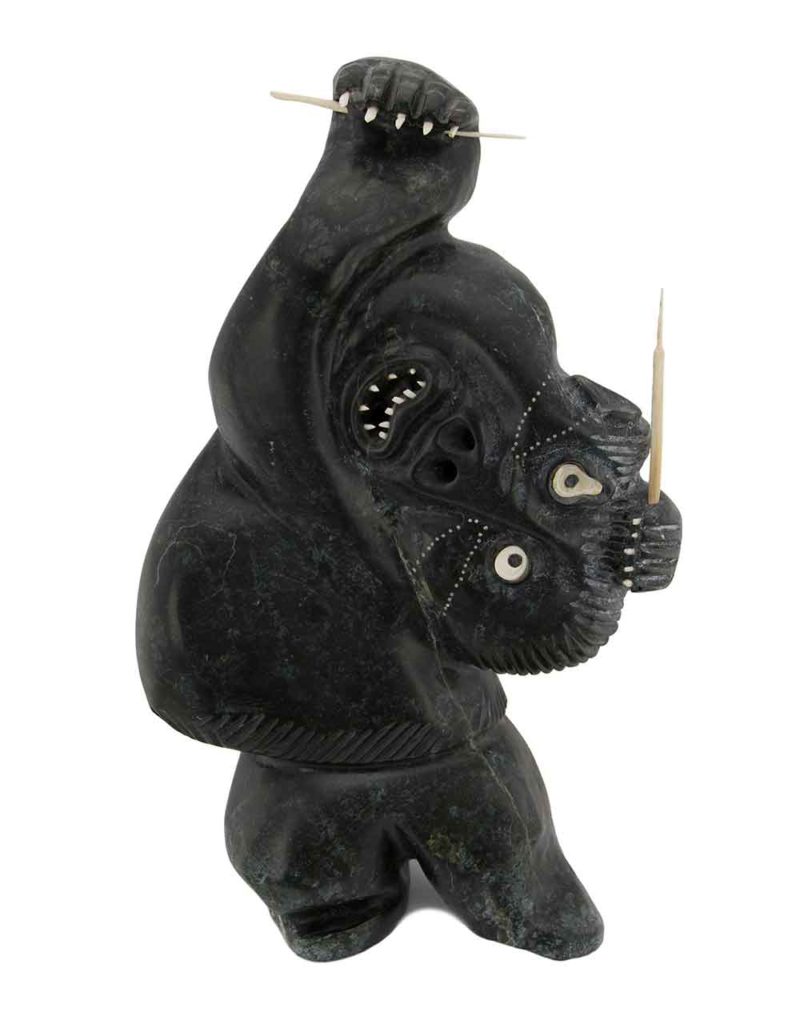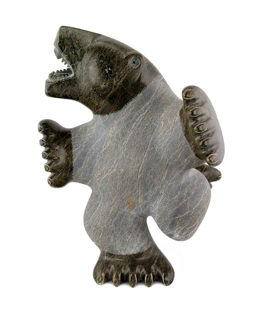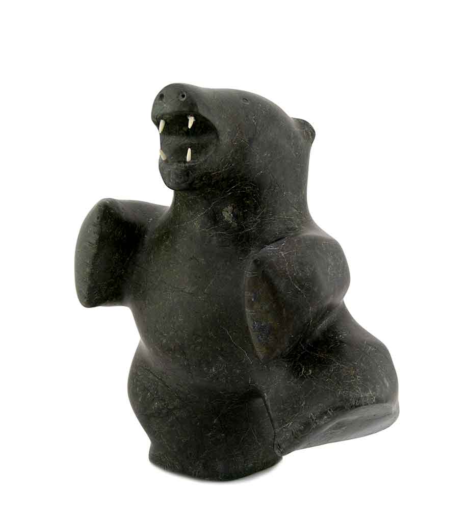 Although bears are commonly sculpted by Inuit artists, the difference between a so-called dancing bear by Nalenik Temela is easily distinguished from one by Pauta Saila. Indeed, Pauta’s bears are iconic and have four characteristic teeth (two upper and two lower) as trademarks. Both bears carry themselves as if they have a human soul, giving a deeper cultural meaning than just a bear.