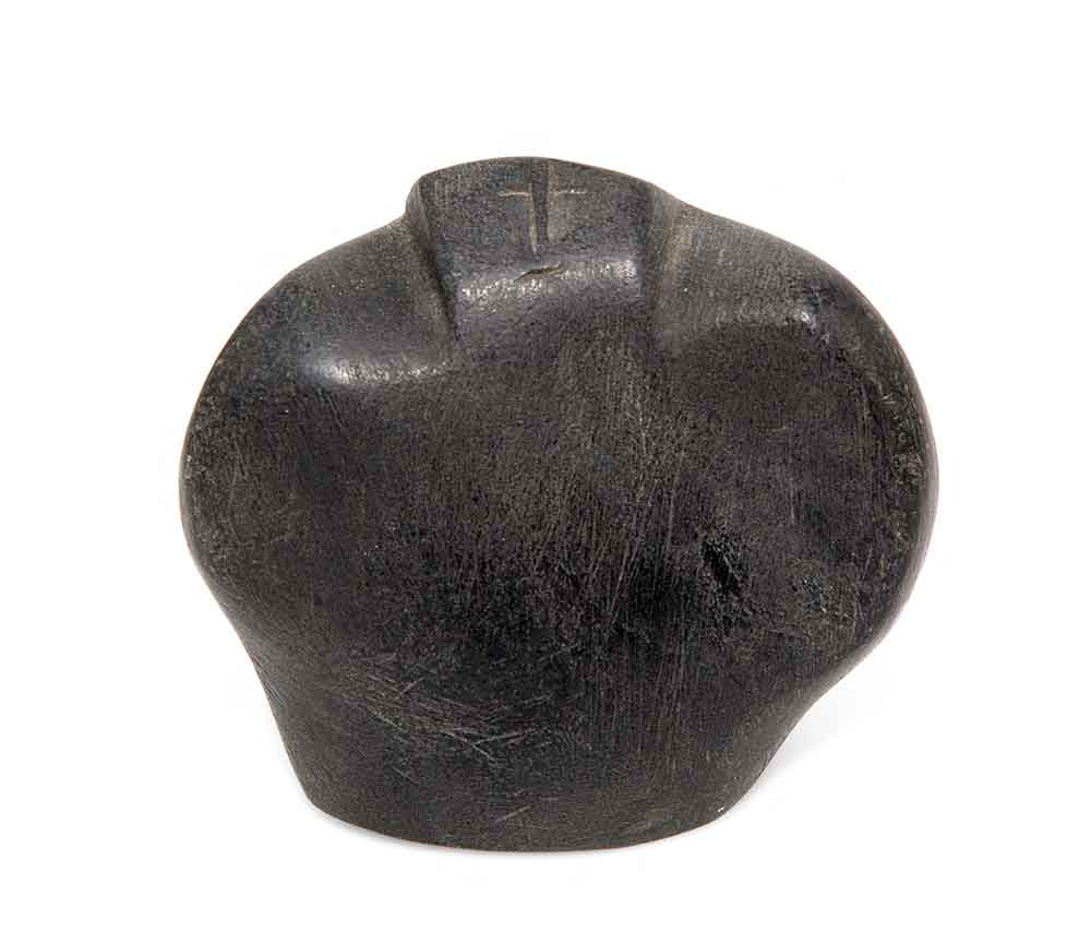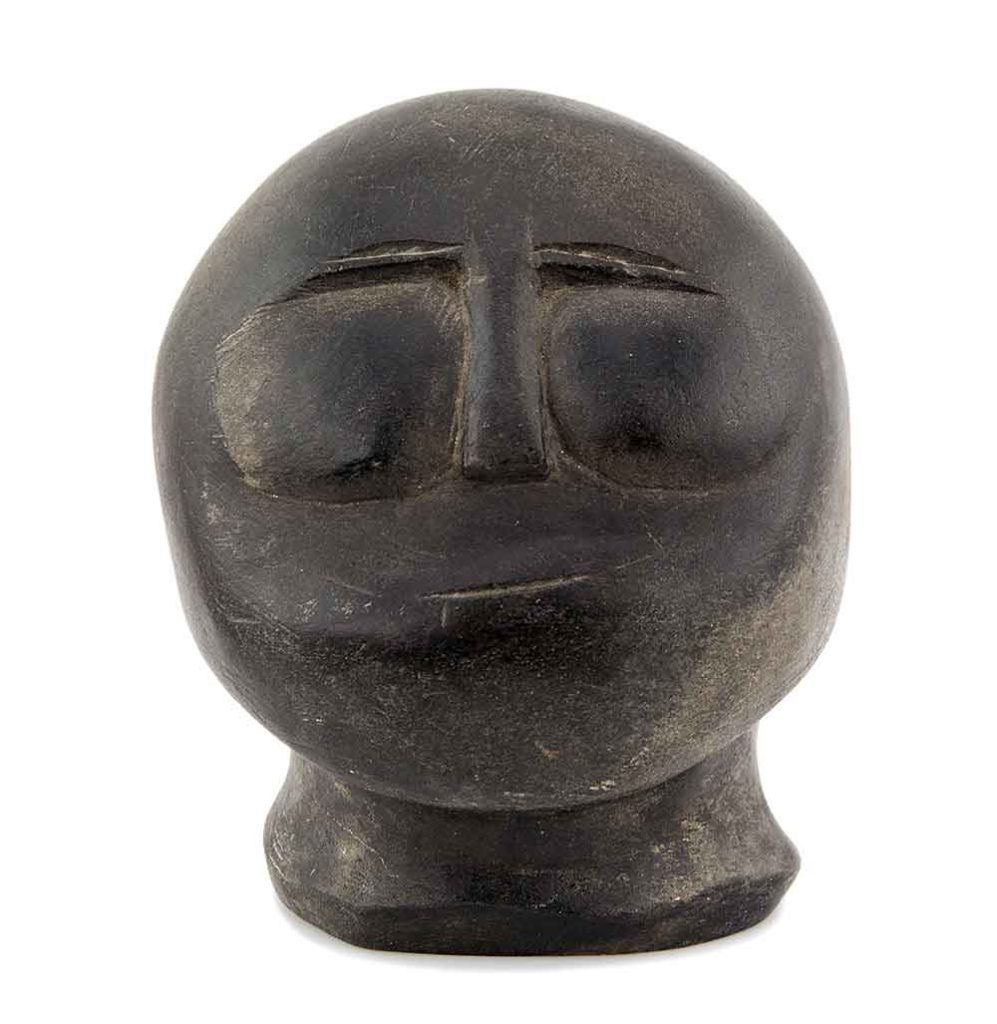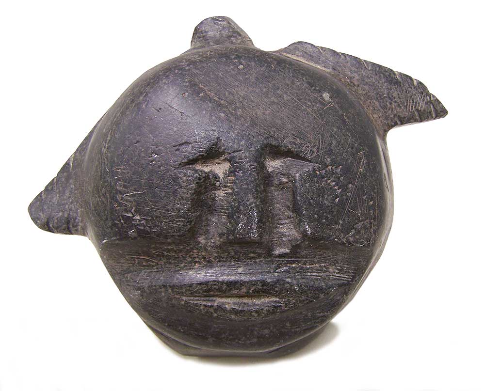 John Kavik, a contemporary of Tiktak, is another Inuit artist with a strong, characteristic, original voice. His work is often gruff, as if shouting to be heard from his innermost soul. Kavik’s face shows a more tormented nature. Yet the difference between the Tiktak and Kavik faces is relatively small: they are approximately the same size and made from similar stone. The difference is all art: one is an Tiktak face, the other a Kavik face. One would not mistake one for the other. These Inuit sculptors are artists of the highest caliber.