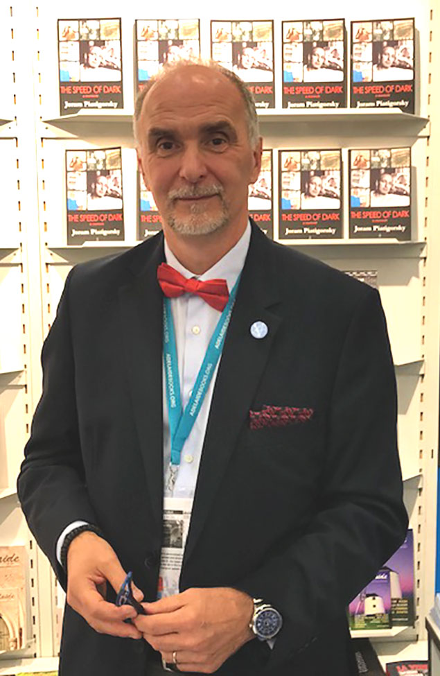 Last week I was bedazzled by the masses of people and hundreds of thousands of books at the Frankfurt Book Fair, reputed as the biggest book fair in the world. Six huge buildings located at the Messe exhibition grounds were packed with booths of publishers from all over the world. On the first day of the Book Fair it took me at least half an hour to locate Adelaide Books, the publisher of my memoir, The Speed of Dark. I found Stevan Nikolic, head of Adelaide Books, conversing with another publisher about obtaining and releasing foreign rights for my and other books he has published.